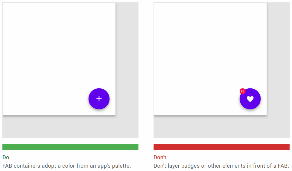An example: Take a look at the Floating Action Button (FAB) from Google’s Material Design. A simple pattern library would give you some code and maybe tell you which colors you’re allowed to use. But only the fact that Google includes guidelines that very specifically tell you in which contexts to use the button (why and how) truly makes it a part of a design system.